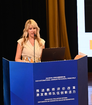 7月4日下午,在“教師評價標準和政策制定”“技術賦能教師評價”及“教師評價結果運用”等三個分論壇上,新加坡頂尖學校萊佛士書院洪松平(Brian Lagman Ang)副校長、美國加州頂尖高中牛津中學校長安柏·休斯頓(Amber Houston)、素有“羅德茲獎學金”(全球青年諾貝爾獎學金)搖籃之稱的澳大利亞塔斯馬尼亞霍巴特學院校長伊麗莎白·羅賓遜(Elizabeth Robinson)等外方參會校長代表圍繞AI賦能教師評價、教師學習和專業發展與來自北京市大興區第一中學、復旦大學附屬中學、杭州市公益中學等全國及上海的優秀校長代表進行了對話和分享。
