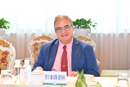 勞爾非常感謝校方的熱情接待,并轉達了薩拉曼卡大學校長的誠摯問候。他重申,上海是薩拉曼卡大學國際合作發展的重要戰略地區,上海師大是其首選合作伙伴。勞爾副校長2019年曾以現代語言學系主任身份訪問過我校,此次再次到訪他深感榮幸。他對兩個中心的成立表示由衷高興,并堅信兩校的國際合作與發展將行穩致遠,結出豐碩成果。