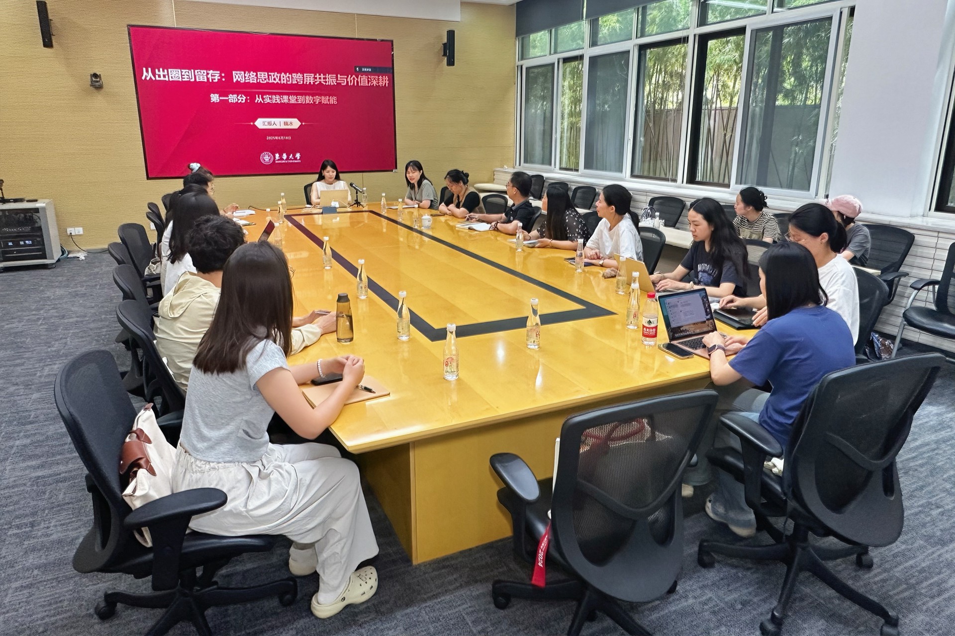 本次推進會邀請教育部名師工作室(魏冰網(wǎng)絡(luò)文化工作室)主持人、全國最美高校輔導(dǎo)員、全國高校輔導(dǎo)員年度人物、東華大學副教授魏冰作專項培訓(xùn)。魏冰以“從出圈到留存:網(wǎng)絡(luò)思政的跨屏共振與價值”為主題,圍繞行走課堂打造青年敘事新載體、網(wǎng)絡(luò)賦能構(gòu)建思政傳播新生態(tài)及價值引領(lǐng)凝聚青年使命新共識三方面展開分享,并與到場師生就行走路線進行交流討論。