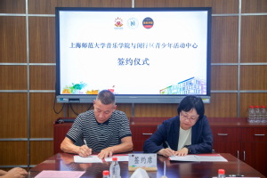 在上海師范大學黨委副書記楊海燕,閔行區教育工作黨委副書記、局長徐明怡的見證下,音樂學院黨委書記王穎,閔行區青少年活動中心黨支部書記、副主任周小龍共同簽署《結對共建協議書》,明確將通過“組織共建、資源共享、人才共育”三大板塊,推動高校專業資源與社會實踐場景的深度融合,進一步拓展藝術實踐、學生就業等方面的契機。