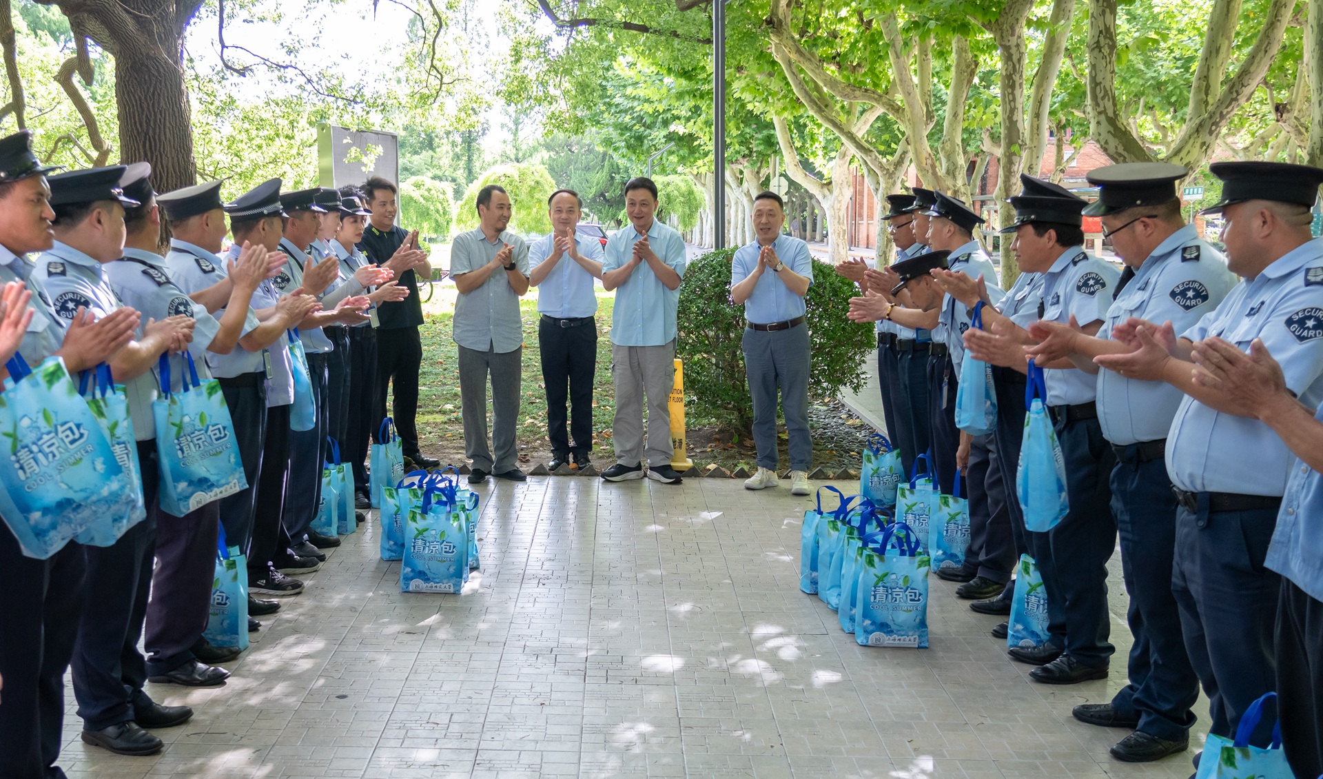 暑期以來,學校眾多教職員工頂著炎炎烈日堅守崗位,以實際行動保障校園各項工作平穩運轉。7月21日下午,校黨委書記林在勇,校長袁雯,校黨委副書記楊海燕,校黨委副書記、副校長朱惠軍,副校長蔣明軍、李曄等校領導一行,深入校園各處走訪慰問暑期堅守一線的師生員工,為大家送上防暑降溫物資,傳遞學校的深切關懷。
