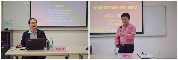 10月26日上午,馬克思主義學院“明德講壇”第十六講在徐匯校區文科實驗樓203室開講。華中科技大學國家治理研究院院長歐陽康教授作了題為《全球治理變局與當代中國使命》的講座。此次講座由張志丹院長主持,我院博士生碩士生近60人參加。